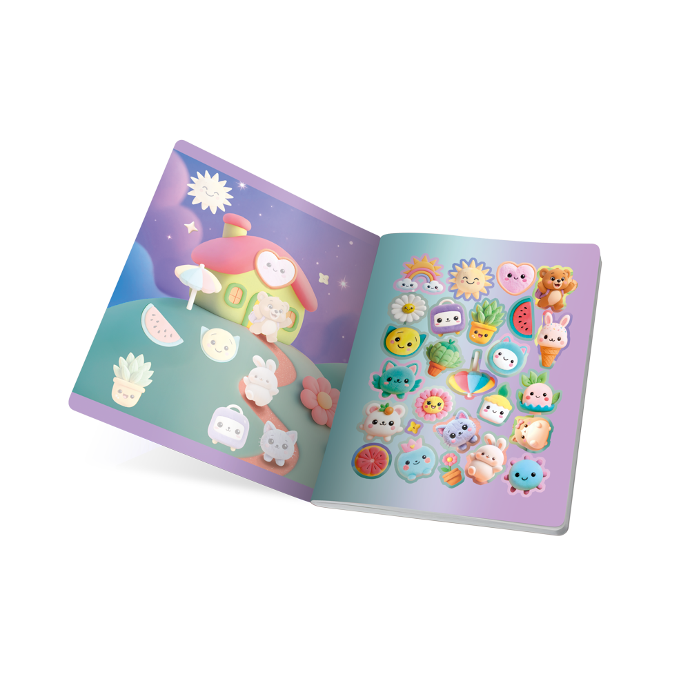 Cada diseño de Kimi trasmite dulzura, calma y alegría, te invitan a crear, imaginar y soñar. Cuaderno cosido con costura ultra resistente protegida con cinta lomo en color para evitar desprendimientos, hoja de stickers con variedad de diseños y formas, reverso decorado, guardas impresas, carátulas más rígidas con diseños novedosos, acabados metalizados y UV Mate resistentes a salpiques de agua.